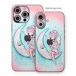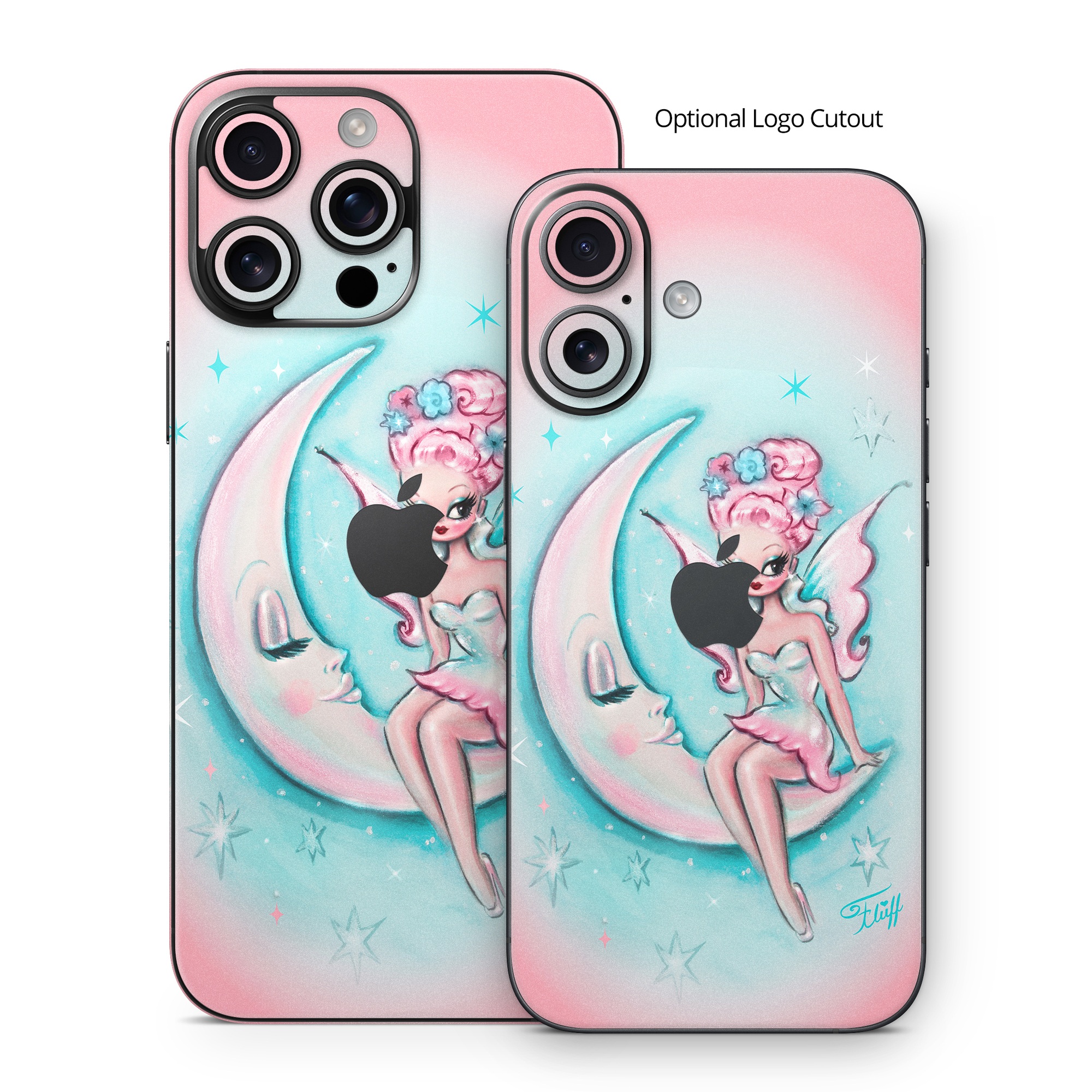 iStyles iPhone 16 Series Skin design of Fictional character, Angel, Cartoon, Pink, Illustration, Mythical creature, Art, with blue, pink, white colors, and tagged with people, fantasy, space, flowers, blue, fairy, fantasy, moon, pink, pixie.