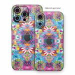 iStyles iPhone 16 Series Skin design of Pattern, Psychedelic art, Design, Textile, Visual arts, Art, Magenta, Motif, Symmetry, Paisley, with pink, blue, purple, yellow, orange, green, red colors, and tagged with patterns, flowers, bright, colorful, doodles, flowers, pastels.