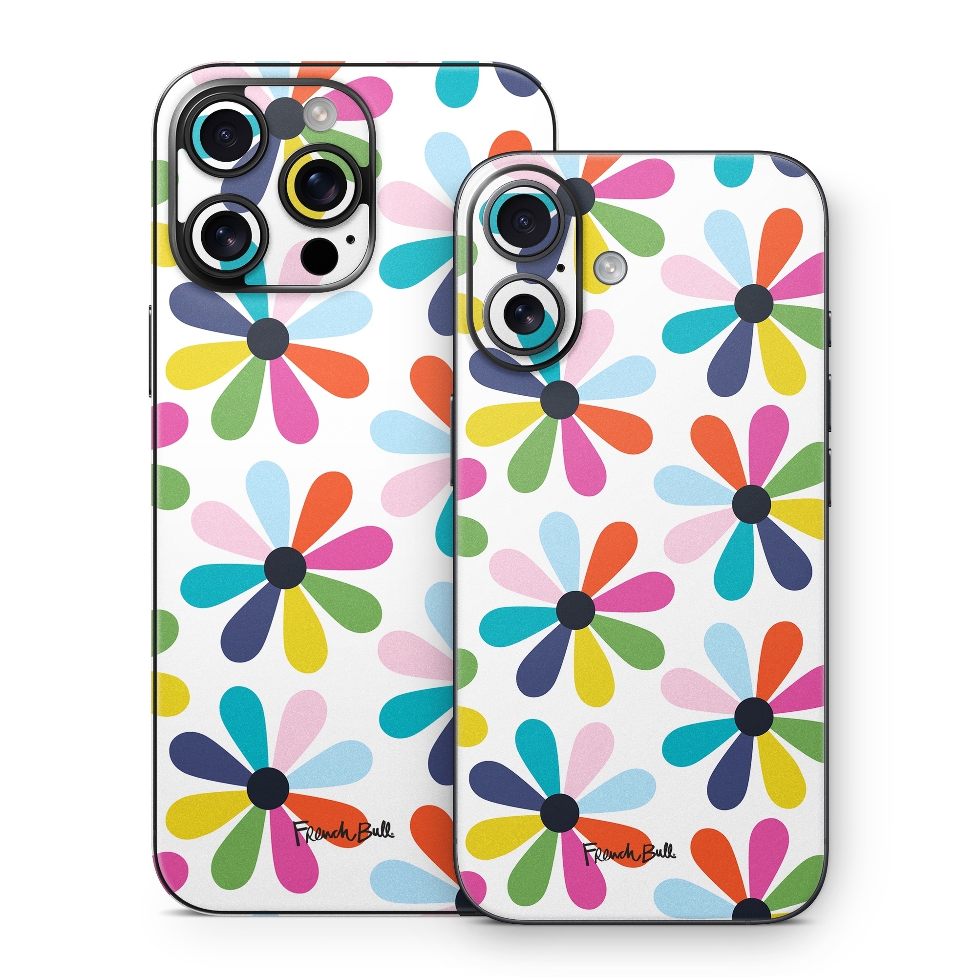 iStyles iPhone 16 Series Skin design of Colorfulness, Aqua, Symmetry, Pattern, Electric blue, Art, Circle, Visual arts, Tints and shades, Wrapping paper, with white, red, blue, pink, purple, green colors, and tagged with patterns, flowers, dainty, daisy, delicate, floral, flower, flowers, garden, multi, multicolor, pattern, rainbow.