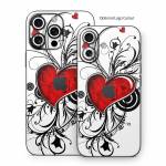 iStyles iPhone 16 Series Skin design of Heart, Line art, Love, Clip art, Plant, Graphic design, Illustration, with white, gray, black, red colors, and tagged with hearts, flowers.