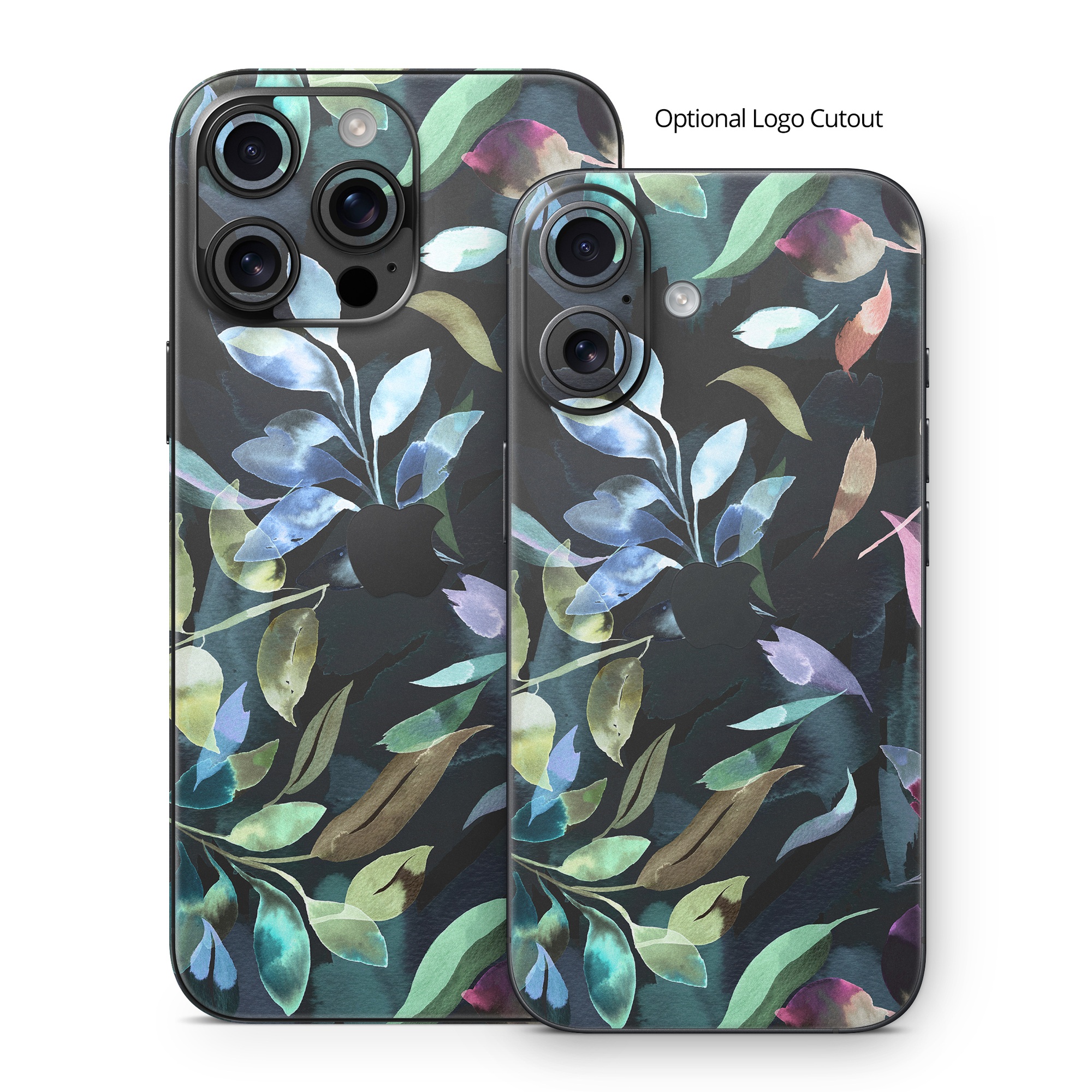 iStyles iPhone 16 Series Skin design of Flower, Leaf, Plant, Botany, Organism, Line, Art, Petal, Groundcover, Terrestrial plant, with black, blue, green, purple, pink, red, white colors, and tagged with patterns, nature, leaves, fall, pattern.