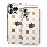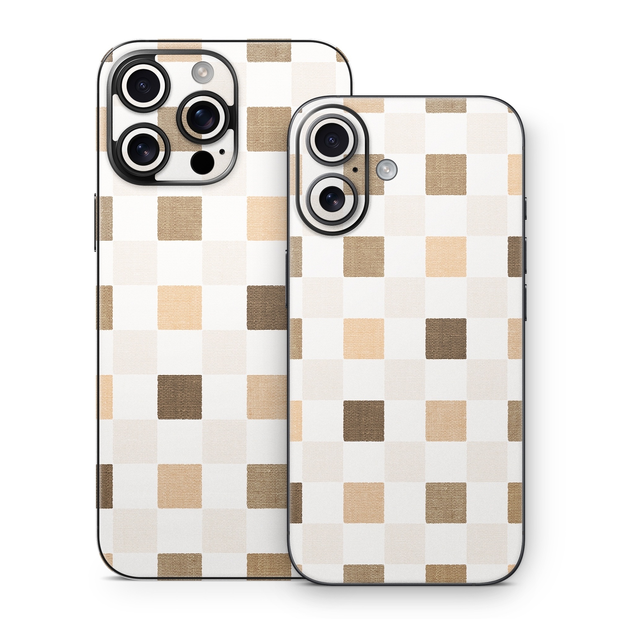 iStyles iPhone 16 Series Skin design of Brown, Rectangle, Beige, Textile, Sleeve, Grey, Khaki, Material property, Symmetry, Art, with white, gray, brown colors, and tagged with patterns, checkered, squares, brown, carpet.