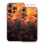 iStyles iPhone 16 Series Skin design of Vertebrate, Plant, Leaf, Orange, Branch, Natural landscape, Organism, Bird, Deciduous, Woody plant, with yellow, orange, red, black colors, and tagged with patterns, animals, halloween, bats.