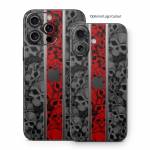 iStyles iPhone 16 Series Skin design of Font, Text, Pattern, Design, Graphic design, Black-and-white, Monochrome, Graphics, Illustration, Art, with black, red, gray colors, and tagged with skulls, patterns.