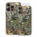 iStyles iPhone 16 Series Skin design of Camouflage, Military camouflage, Tree, Plant, Leaf, Design, Adaptation, Branch, Pattern, Trunk, with black, green, gray, red colors, and tagged with nature.