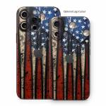 iStyles iPhone 16 Series Skin design of Baseball bat, Baseball equipment, with black, red, gray, green, blue colors, and tagged with patterns, signs, flags.