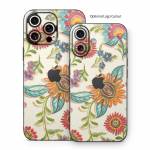 iStyles iPhone 16 Series Skin design of Pattern, Floral design, Flower, Botany, Design, Visual arts, Textile, Plant, Wildflower, Pedicel, with gray, green, pink, yellow, red, blue colors, and tagged with patterns, nature, flowers.