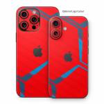 iStyles iPhone 16 Series Skin design of Triangle, Font, Rectangle, Tints and shades, Magenta, Electric blue, Pattern, Parallel, Symmetry, Carmine, with red, blue colors, and tagged with patterns, hexagon, pattern, lines.