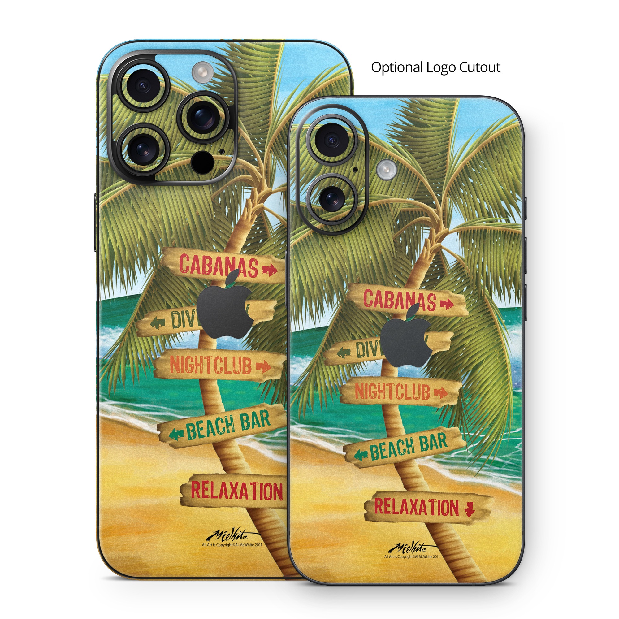 iStyles iPhone 16 Series Skin design of Palm tree, Arecales, Tropics, Tree, Caribbean, Wave, Water, Coconut, Ocean, Elaeis, with green, purple, gray, black, blue colors, and tagged with nature.