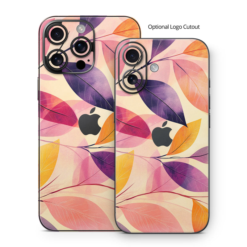 iStyles iPhone 16 Series Skin design of Pink, Orange, Brown, Purple, Creative arts, Paint, with yellow, orange, purple, pink colors, and tagged with abstract, nature, leaves, nature.