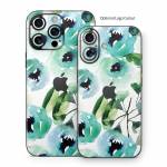 iStyles iPhone 16 Series Skin design of Green, Pattern, Leaf, Aqua, Plant, Design, Branch, Organism, Flower, Ivy, with white, green, blue, black colors, and tagged with flowers, patterns, floral, flowers, pattern, peonies, sara, saraberrenson, watercolor.