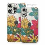 iStyles iPhone 16 Series Skin design of Floral design, Pattern, Flower, Wildflower, Plant, Botany, Leaf, Design, Textile, Visual arts, with blue, yellow, red, green, orange, gray colors, and tagged with flowers, patterns.