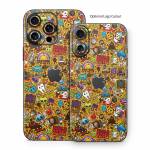 iStyles iPhone 16 Series Skin design of Pattern, Psychedelic art, Visual arts, Art, Design, Illustration, Graphic design, Doodle, with black, green, red, gray, orange, blue colors, and tagged with abstract, animals, objects, signs.