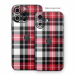 iStyles iPhone 16 Series Skin design of Plaid, Tartan, Pattern, Red, Textile, Design, Line, Pink, Magenta, Square, with black, gray, pink, red, white colors, and tagged with patterns.