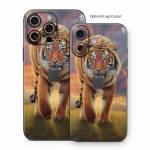 iStyles iPhone 16 Series Skin design of Tiger, Wildlife, Bengal tiger, Mammal, Felidae, Siberian tiger, Sky, Big cats, Terrestrial animal, Carnivore, with black, white, yellow, red, green, blue colors, and tagged with animals, nature, animal, nature, sunrise, sunset, tiger, wildlife.