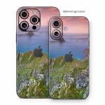 iStyles iPhone 16 Series Skin design of Body of water, Nature, Sky, Coast, Sea, Headland, Natural landscape, Promontory, Coastal and oceanic landforms, Cliff, with red, orange, green, blue, yellow colors, and tagged with nature, photos, landscape, mountains, ocean, photo, photography, sunset.