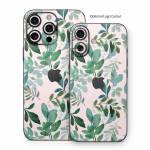 iStyles iPhone 16 Series Skin design of Pattern, Green, Leaf, Design, Plant, Tree, Military camouflage, with white, green, blue colors, and tagged with nature, patterns, filigree, green, greenery, leaf, leaves, nature, outdoors, pastel, watercolor.