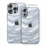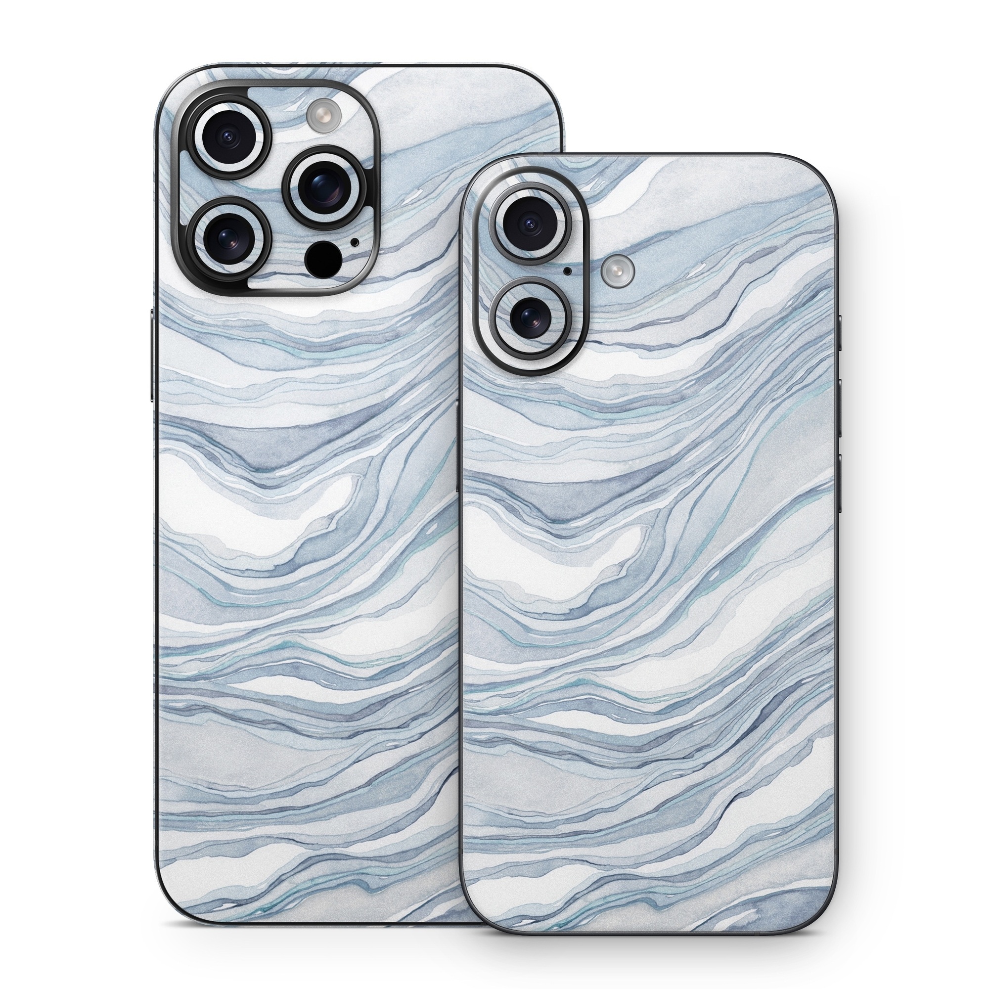 iStyles iPhone 16 Series Skin design of Water, Liquid, Azure, Fluid, Grey, Aqua, Pattern, Wind wave, Electric blue, Wind, with blue, white colors, and tagged with patterns, abstract, blue, draw, indigo, line, lines, paint, painting, purple, watercolor.