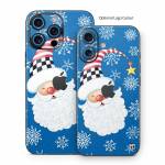 iStyles iPhone 16 Series Skin design of Plant, Celebrating, Rectangle, Font, Art, Happy, Ornament, Santa claus, Event, Christmas, with blue, white, black, red, yellow colors, and tagged with people, fantasy, patterns, objects, santa, claus, hat, star, snowflakes, christmas.