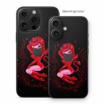 iStyles iPhone 16 Series Skin design of Pink, Illustration, Fictional character, Graphic design, Neon, Magenta, Graphics, Art, with black, red, pink colors, and tagged with people, fantasy, devil, halloween, hotpink, pink, pinup, pinupgirl, red.