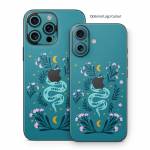 iStyles iPhone 16 Series Skin design of Creative arts, Font, Art, Electric blue, Pattern, Rectangle, Graphics, Motif, Illustration, Ornament, with blue, pink, green, yellow colors, and tagged with animals, flowers, nature, space, snake, flowers, moon, stars, night, sky, constellations.