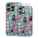 iStyles iPhone 16 Series Skin design of Facial expression, Head, Design, Collection, Fictional character, Pattern, Skull, Illustration, Collage, Style, with gray, white, red, blue, green, black, pink, purple colors, and tagged with people, fantasy, objects, costume, halloween, horror, pinup, pinupgirl.