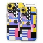 iStyles iPhone 16 Series Skin design of White, Black, Rectangle, Font, Art, Red, Pattern, Tints and shades, Circle, Electric blue, with blue, white, black, yellow, pink, purple colors, and tagged with abstract, abstract, circles, squares, checkered, stripes, dots.