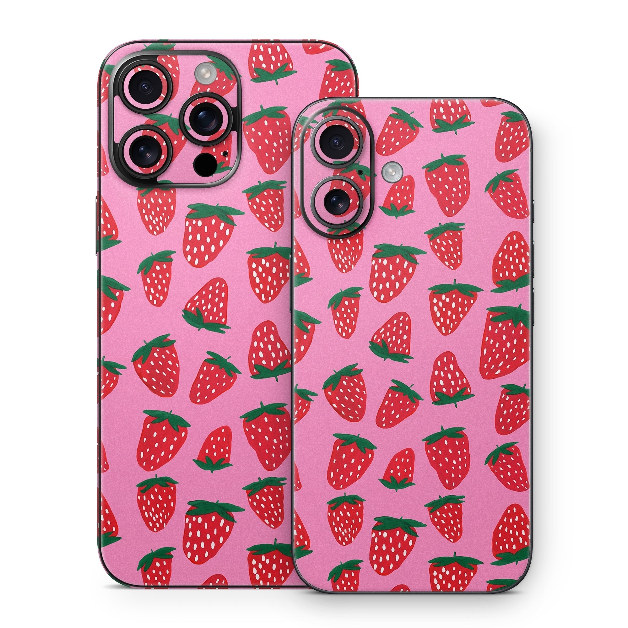 iStyles iPhone 16 Series Skin design of Textile, Font, Rectangle, Red, Triangle, Pattern, Carmine, Design, Cone, Wrapping paper, with red, green, pink, white colors, and tagged with patterns, objects, strawberry.