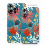 iStyles iPhone 16 Series Skin design of Pattern, Visual arts, Wrapping paper, Design, Wildflower, Floral design, Textile, Flower, Plant, Motif, with blue, red, gray, yellow, green colors, and tagged with flowers, patterns.
