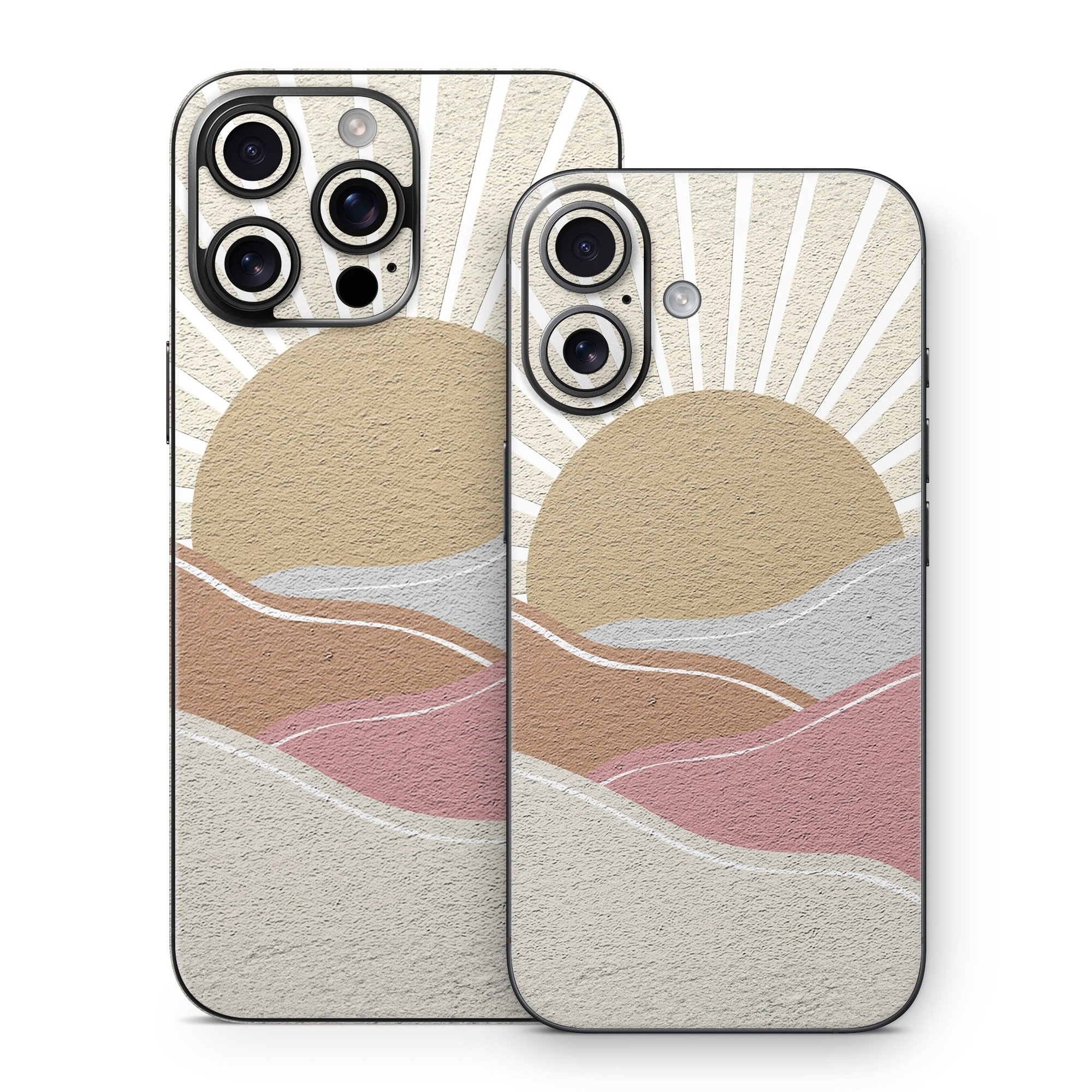 iStyles iPhone 16 Series Skin design of Art, Pattern, Symmetry, Tints and shades, Slope, Building material, Circle, Visual arts, Creative arts, Metal, with yellow, pink, gray, white, brown colors, and tagged with nature, sunset, clouds.