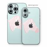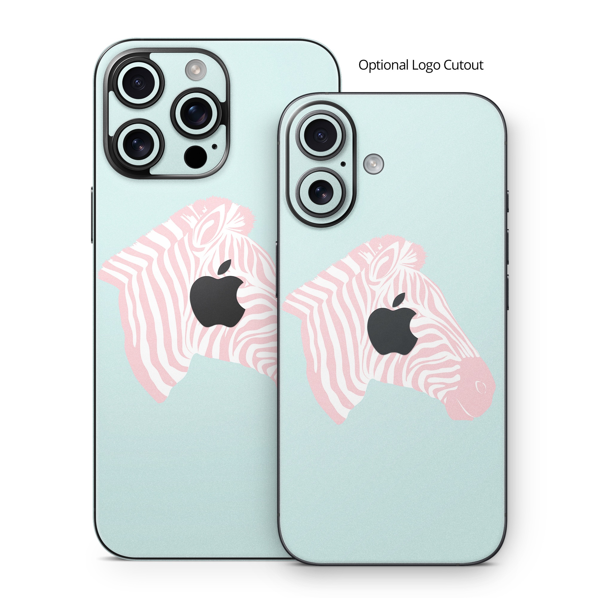 iStyles iPhone 16 Series Skin design of Sleeve, Fin, Art, Terrestrial animal, Snout, Painting, Fish, Marine biology, Magenta, Pattern, with pink, white, blue colors, and tagged with patterns, animals, pink, stripes, zebra.