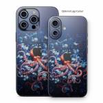 iStyles iPhone 16 Series Skin design of Water, Azure, Marine invertebrates, Liquid, Natural environment, Organism, Fluid, Art, Font, World, with blue, red, white, purple colors, and tagged with animals, fantasy, flowers, nature, octopus, squid, sea, ocean.
