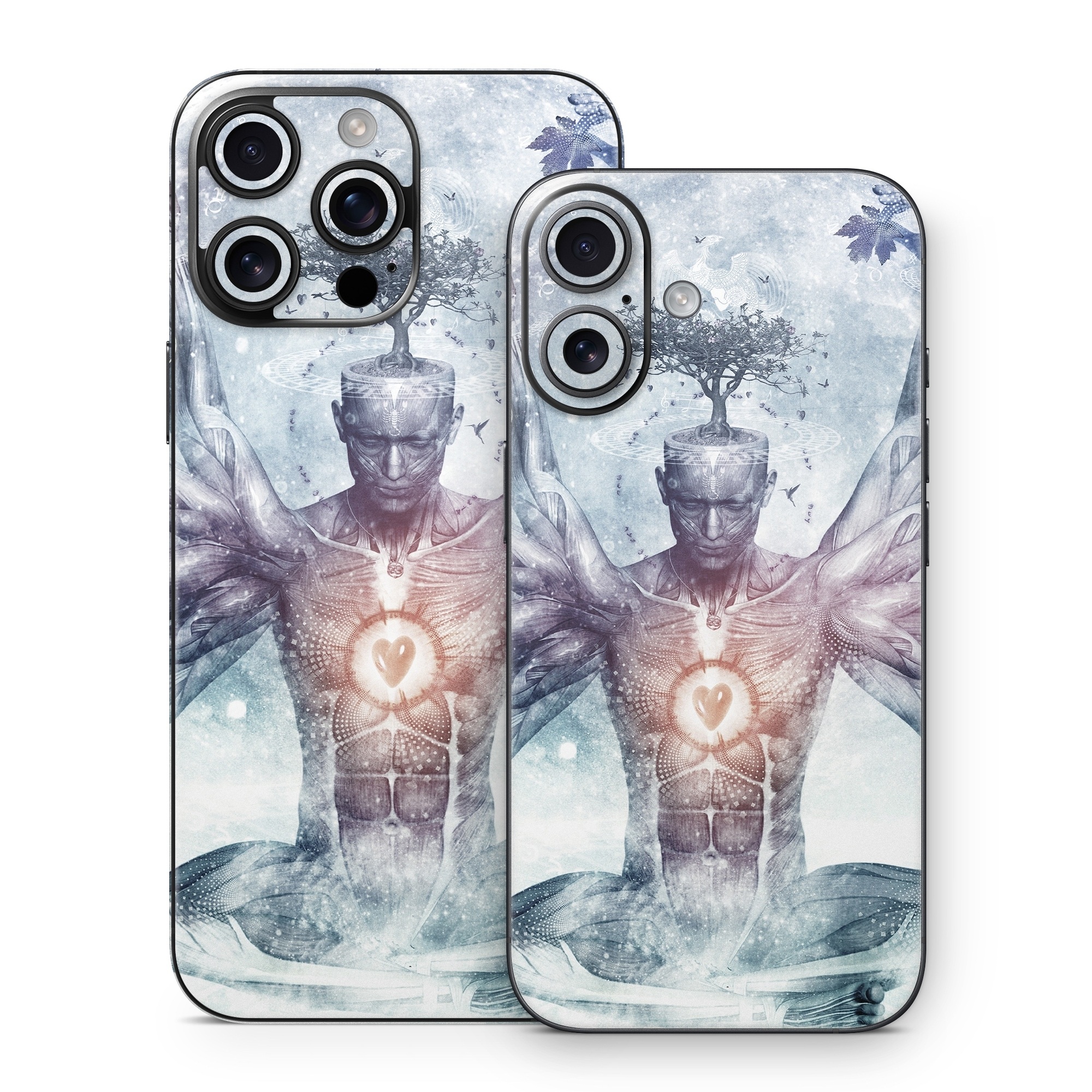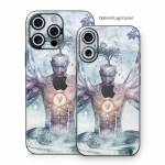 iStyles iPhone 16 Series Skin design of Mythology, Cg artwork, Water, Illustration, Fictional character, Space, Graphics, Art, Graphic design, with blue, red, orange, black, white colors, and tagged with people, fantasy, objects, nature, signs.