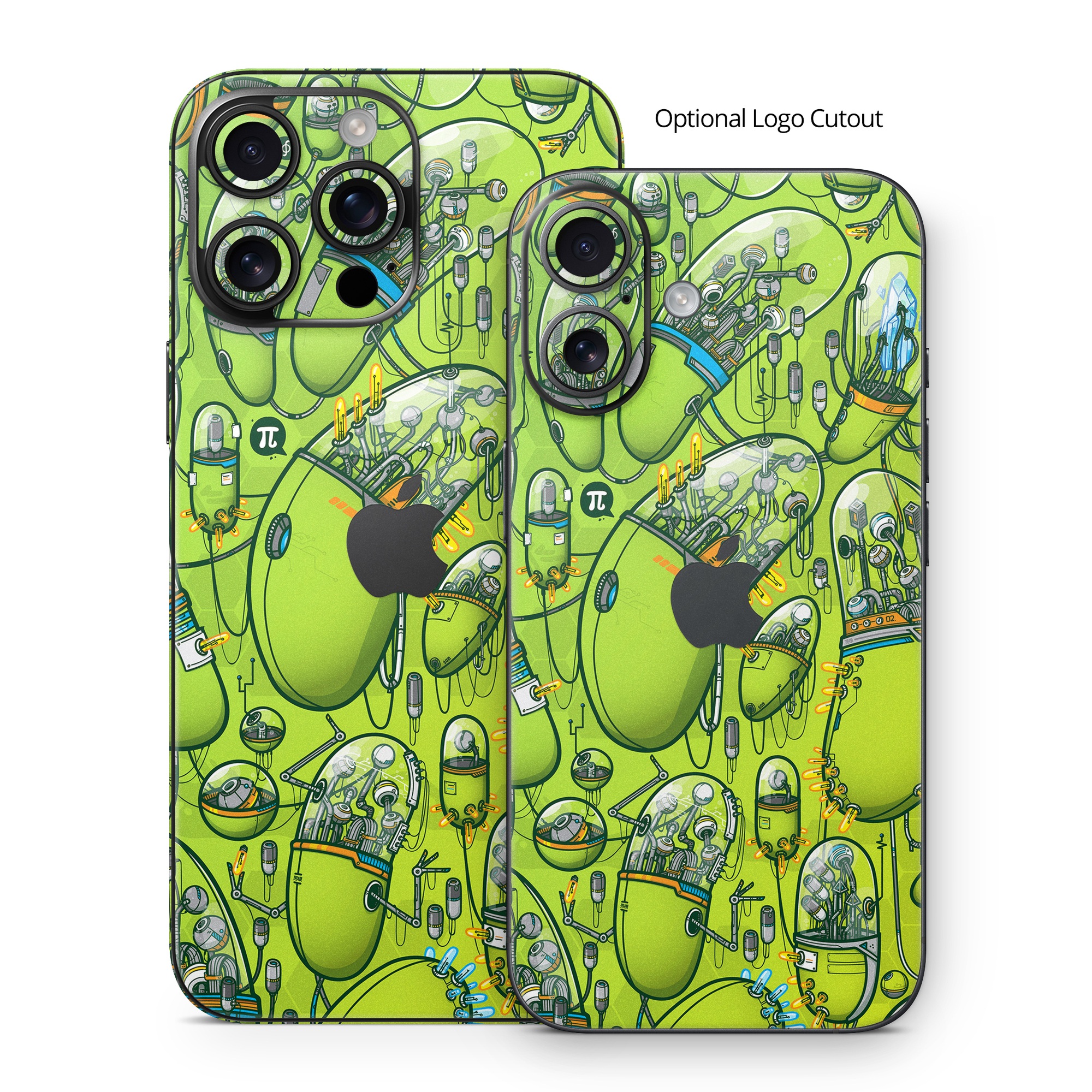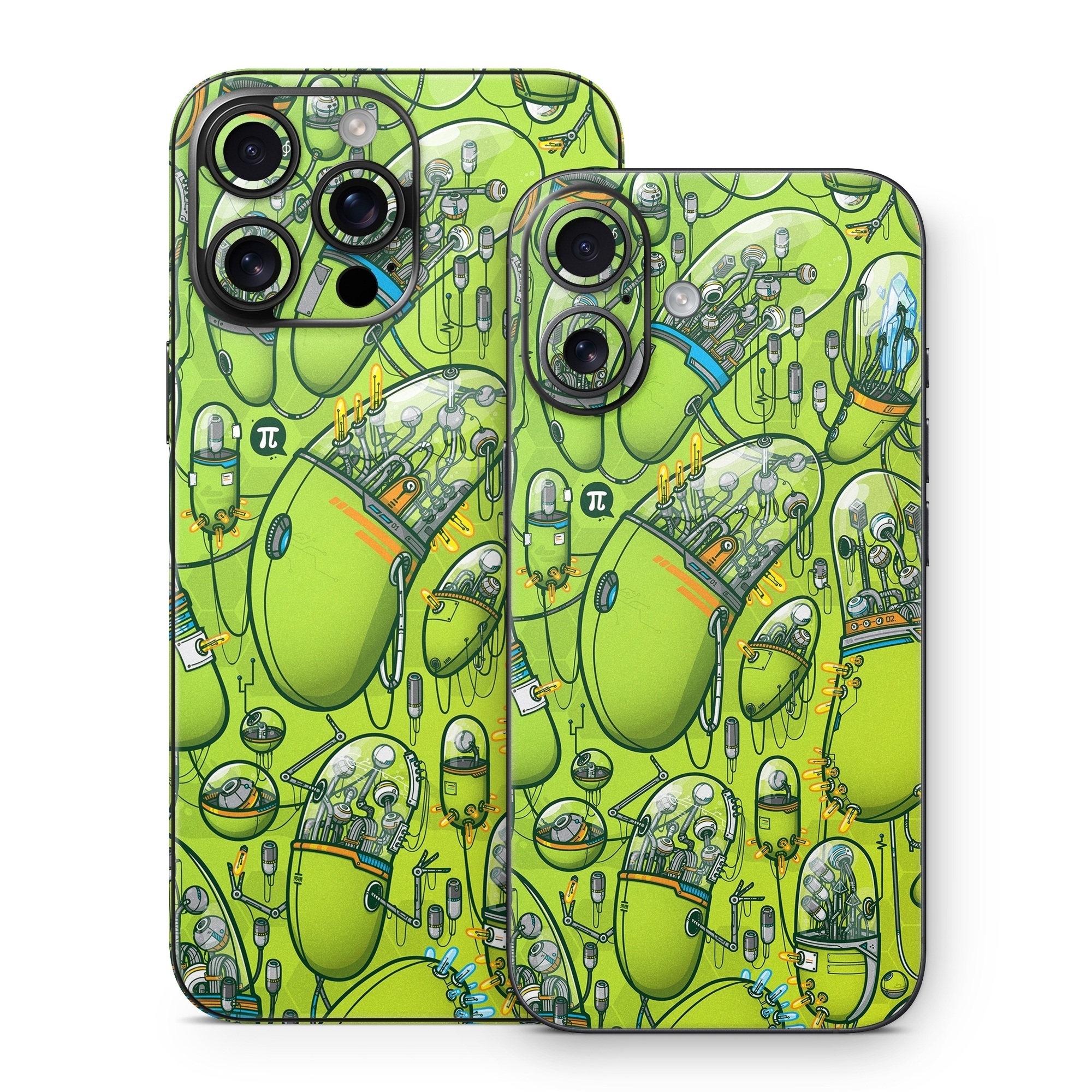 iStyles iPhone 16 Series Skin design of Green, Pattern, Yellow, Design, Illustration, Plant, Art, Graphic design, Urban design, with green, blue, gray, yellow, orange colors, and tagged with objects, patterns, green, illustration, limegreen, pattern, technology, vector.