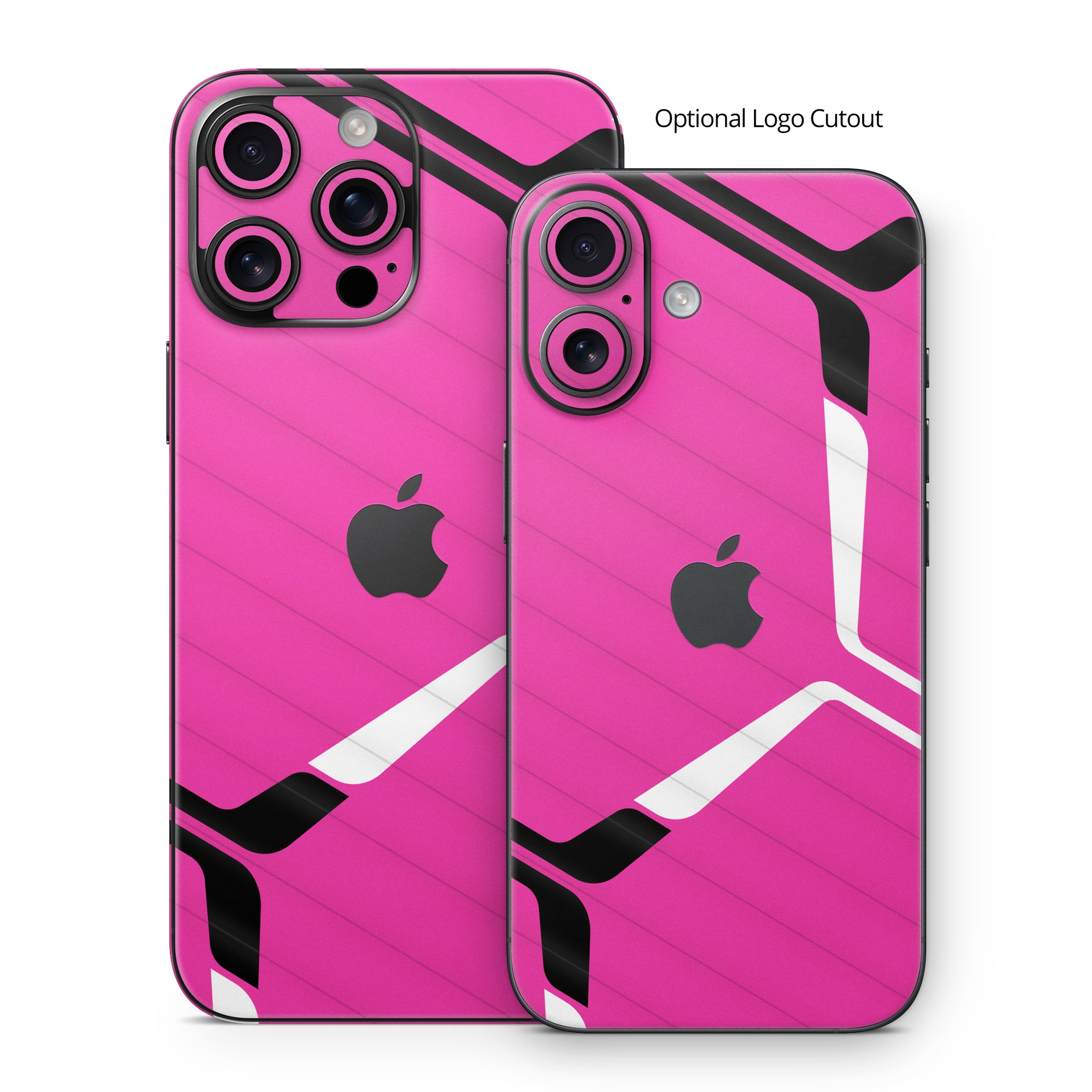 iStyles iPhone 16 Series Skin design of Textile, Sleeve, Jersey, Purple, Pink, Violet, Font, Magenta, Material property, Electric blue, with pink, black, white colors, and tagged with patterns, hexagon, pattern, lines.