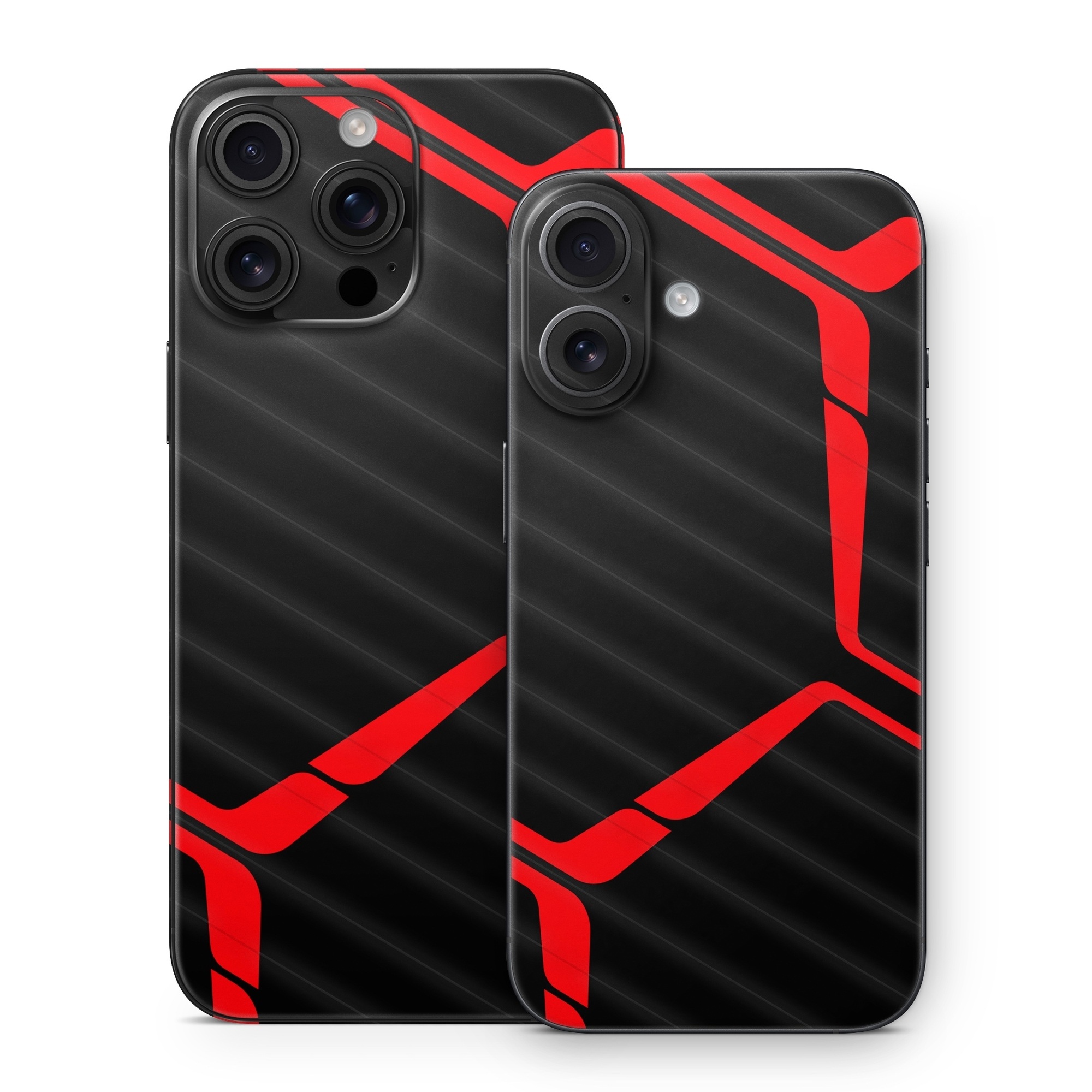 iStyles iPhone 16 Series Skin design of Sleeve, Triangle, Font, Rectangle, Parallel, Magenta, Electric blue, Pattern, Symmetry, T-shirt, with black, red colors, and tagged with patterns, hexagon, pattern, lines.
