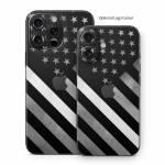 iStyles iPhone 16 Series Skin design of Black, Black-and-white, Pattern, Monochrome Photography, Line, Flag Of The United States, Monochrome, Flag, Design, Font, Photography, Style, Parallel, with black, white, gray colors, and tagged with flags, signs, doctor, ems, emt, firstresponder, medical, nurse.