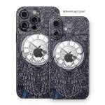 iStyles iPhone 16 Series Skin design of Blue, Pattern, Psychedelic art, Design, Circle, Art, Font, Graphic design, Visual arts, Illustration, with black, gray colors, and tagged with objects, patterns, animals, grandfather, clock, clocks, alarm, time, antique, table.