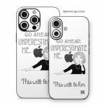 iStyles iPhone 16 Series Skin design of Gesture, Happy, Font, Illustration, Poster, Line art, Graphics, Art, Logo, Graphic design, with black, white colors, and tagged with signs, people, confidence, attitude, go, ahead, underestimate, me, this, will, be, fun.