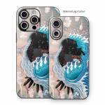 iStyles iPhone 16 Series Skin design of Blue, Turquoise, Illustration, Aqua, Graphic design, Pattern, Art, Design, Graphics, Visual arts, with gray, blue, black, pink, white colors, and tagged with abstract, animals, nature, bison, blue, buffalo, bull, greatwave, ocean, teal, wave.