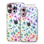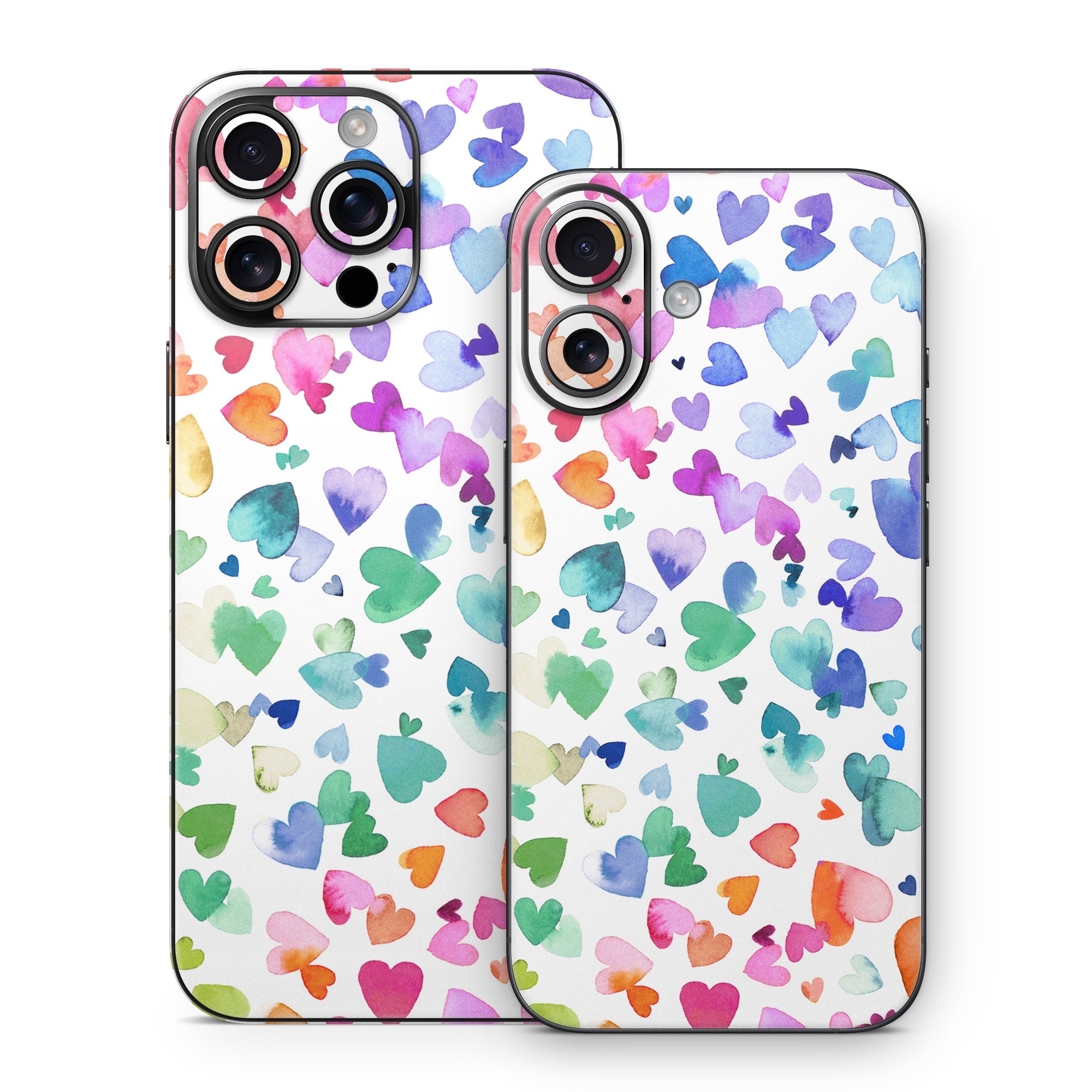 iStyles iPhone 16 Series Skin design of Colorfulness, Art, Line, Creative arts, Pattern, Circle, Font, Visual arts, Magenta, Painting, with white, blue, green, red, pink, orange, yellow, purple colors, and tagged with patterns, hearts, heart, hearts, love, pattern, pride, rainbow, shapes, valentine, valentinesday.