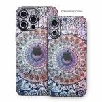 iStyles iPhone 16 Series Skin design of Tapestry, Pattern, Art, Close-up, Circle, Fractal art, Textile, Eye, Design, Kaleidoscope, with blue, red, yellow, purple, green colors, and tagged with patterns.