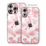iStyles iPhone 16 Series Skin design of Pink, Pattern, Rose, Design, Floral design, Rose family, Garden roses, Petal, Flower, Textile, with white, red, pink colors, and tagged with flowers, patterns, blush, blushflowers, flowers, pink, watercolor.