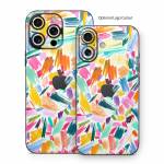 iStyles iPhone 16 Series Skin design of Colorfulness, Art, Triangle, Pattern, Painting, Symmetry, Creative arts, Paint, Electric blue, Art paint, with white, pink, blue, yellow, orange, red, green, gray colors, and tagged with patterns, colorful, rainbow, happy.
