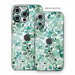 iStyles iPhone 16 Series Skin design of Azure, Line, Aqua, Pattern, Art, Symmetry, Electric blue, Circle, Creative arts, Terrestrial plant, with white, green, black colors, and tagged with patterns, nature, filigree, garden, green, leaves, nature, paint, painting, teal, turquoise, watercolor.
