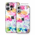 iStyles iPhone 16 Series Skin design of Art paint, Botany, Paint, Petal, Painting, Creative arts, Art, Line, Material property, Pattern, with white, blue, green, red, pink, purple, yellow colors, and tagged with patterns, flowers, abstract, paint, painting, splatter, spring, stamp, watercolor.