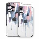 iStyles iPhone 16 Series Skin design of Gesture, Snow, Art, Freezing, Material property, Font, Fashion design, Sportswear, Electric blue, Magenta, with white, blue, pink, black colors, and tagged with patterns, abstract, nature, abstract, blue, dye, navy, paint, painting, pattern, pink, stripes, tiedye.