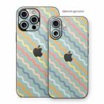 iStyles iPhone 16 Series Skin design of Azure, Blue, Orange, Textile, Wood, Art, Font, Line, Aqua, Symmetry, with blue, orange, yellow, pink colors, and tagged with patterns, colorful, wavy.
