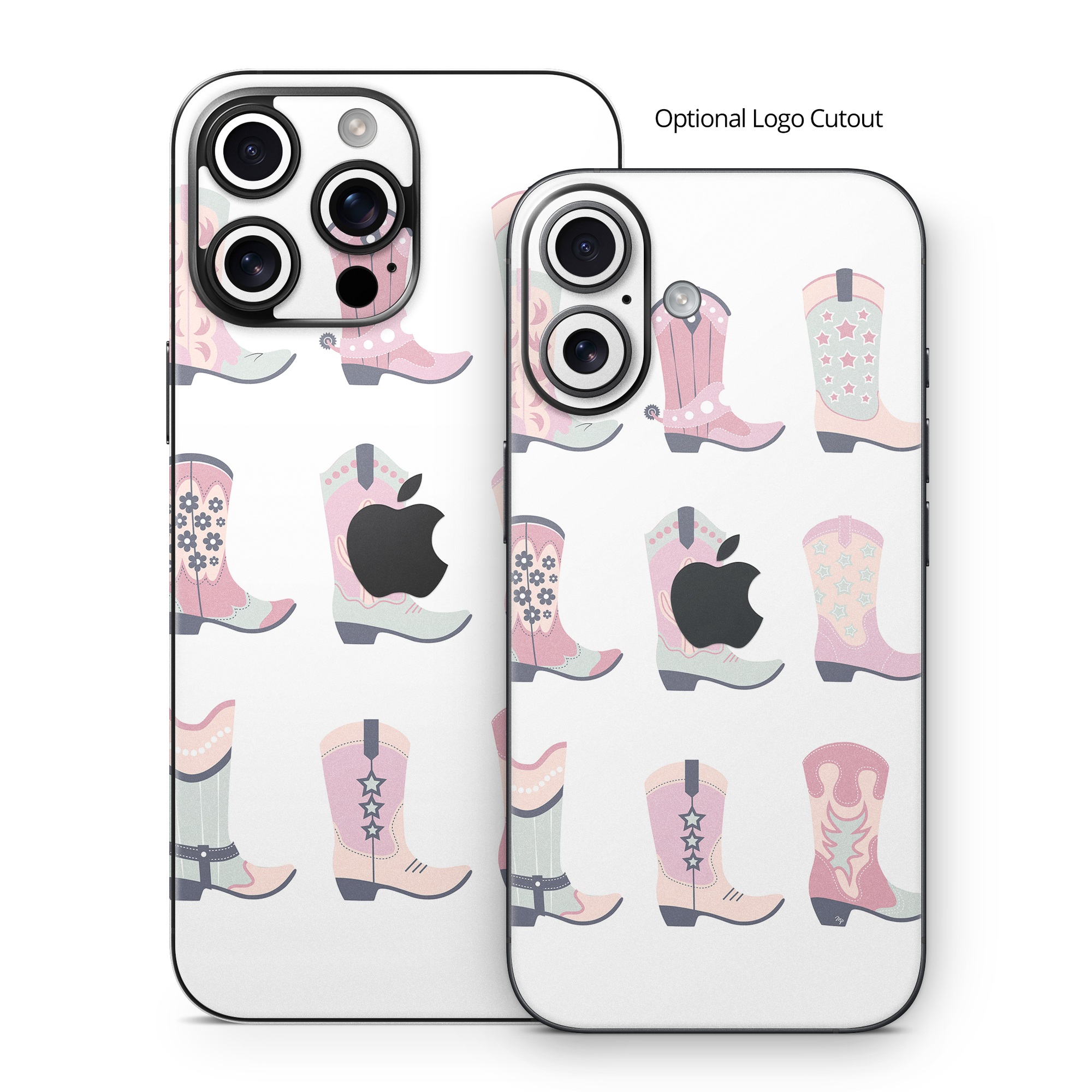 iStyles iPhone 16 Series Skin design of Footwear, Shoe, White, Durango boot, Product, Fashion, Textile, Pink, Font, Red, with pink, white, blue, brown colors, and tagged with patterns, objects, fashion, flowers, girl, shoes, boots, cowgirl.