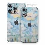 iStyles iPhone 16 Series Skin design of Blue, Watercolor paint, Painting, Flower, Plant, Art, Acrylic paint, Wildflower, Visual arts, Floral design, with gray, blue colors, and tagged with patterns, flowers.